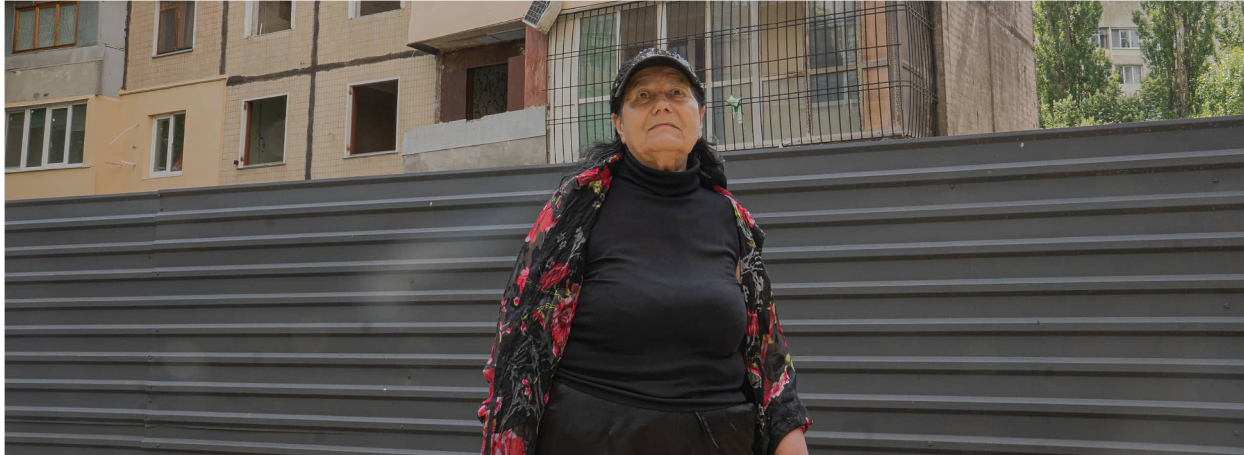 Поки що жінка живе навпроти зруйнованого будинку. Вона виходить на вулицю і сидить на новій лавочці. Щоразу дивиться в бік своїх вікон і згадує теплі моменти життя на проспекті Добровольського, 134.