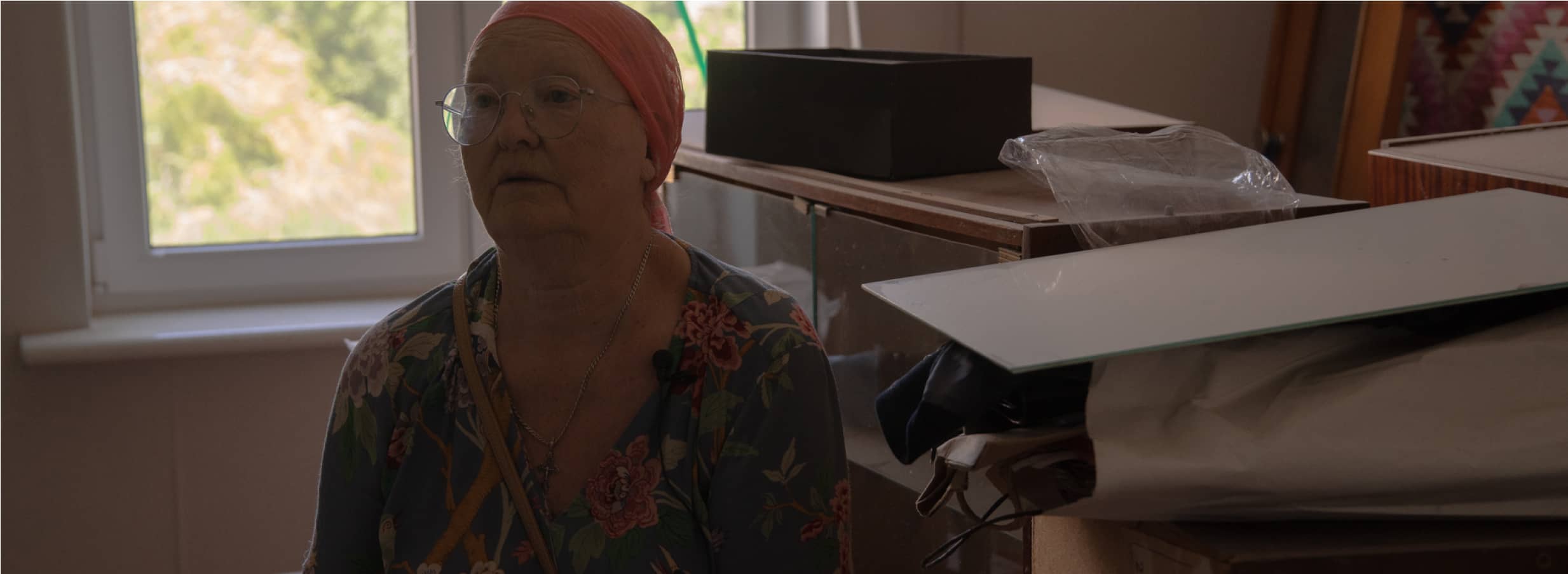 Щоранку Раїса пірнає в холодний душ, а потім прямує в храм пекти просфори. Вона працює з 5 ранку до 11 години дня. Далі сієста і вечірня служба, де Раїса читає псалми. Інколи в цьому неперервному ланцюжку знаходиться місце і для дачі. В квартирі на 5 поверсі Раїса мешкала 32 роки, та попри це в неї немає жодної краплі жалості до голих стін. Їй набагато важче згадувати обличчя тих, хто втратив рідних і дивитись на фотографії дітей біля будинку. Тут досі стоїть імпровізований меморіал, який припав енним слоєм пилу. Бадьора бабуся не стримується, дістає хустку і протирає набряклі очі. Можливо, в цей момент Раїса згадує своїх доньку та онуку.
